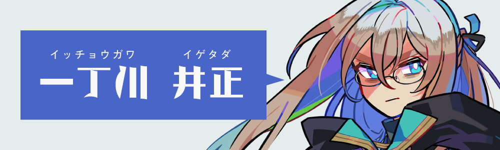 一丁川井正、この文字列なんやねんと言うと『棒線だけで構成される漢字を一画ずつ増やしていった名前』です。もう本当にそれ以上の意味とか無いので一種のネタネームというか言葉遊びみたいな名前なんですが、全体的に直線でカクカクしてるのでキャラの偏屈さには合ってる気がします。