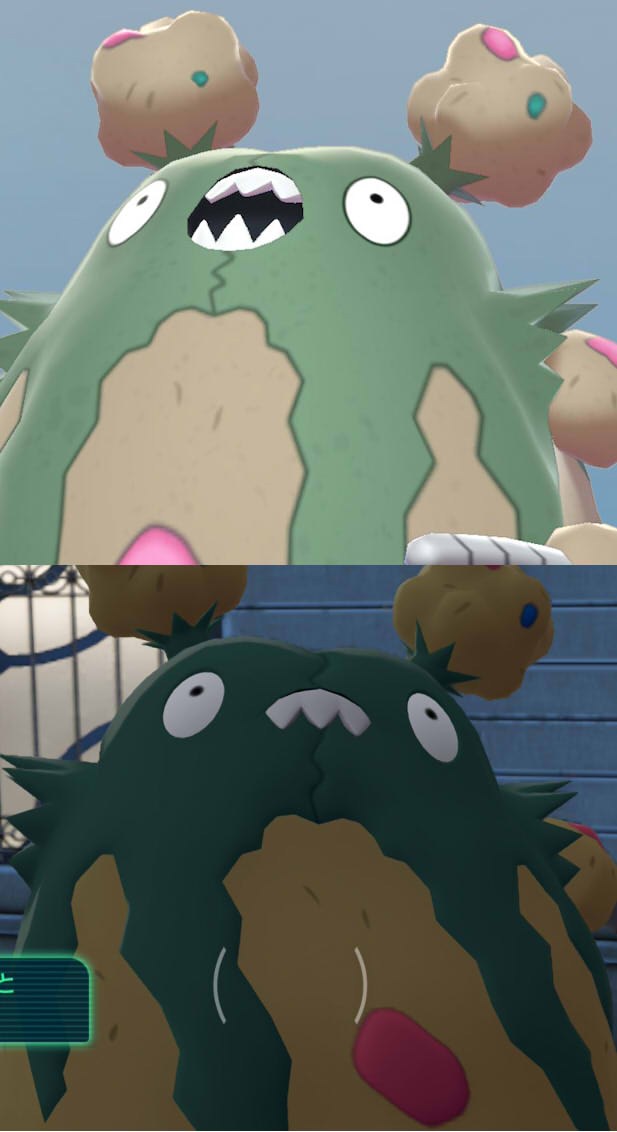 剣盾のダストダス、可愛いはもちろん可愛いんだけどちょっと質感が気になるところであって、ゴミっぽい質感を出そうとするあまり変なテクスチャを貼って妙な雰囲気になってたとか、なんか色が薄いとか、そういうところはちょっと気になってたので……ZAのダストダスはあんまりゴチャゴチャしたテクスチャは貼らず、色も濃い目になってるっぽくてかなり………かなりドットやイラストの印象に近い気がする………!!!うれしいね。