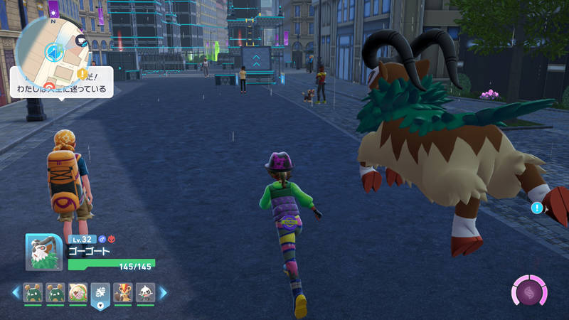 これはサブイベントクリアのために進化させたゴーゴートを依頼主まで連れて行ってる最中、躍動感すご。となってるスクショ